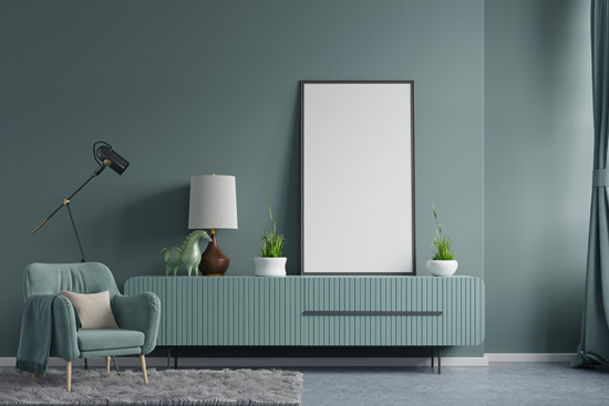 Dark Green Wall in Living Room Interior - Sötétzöld fal a nappali belső terében