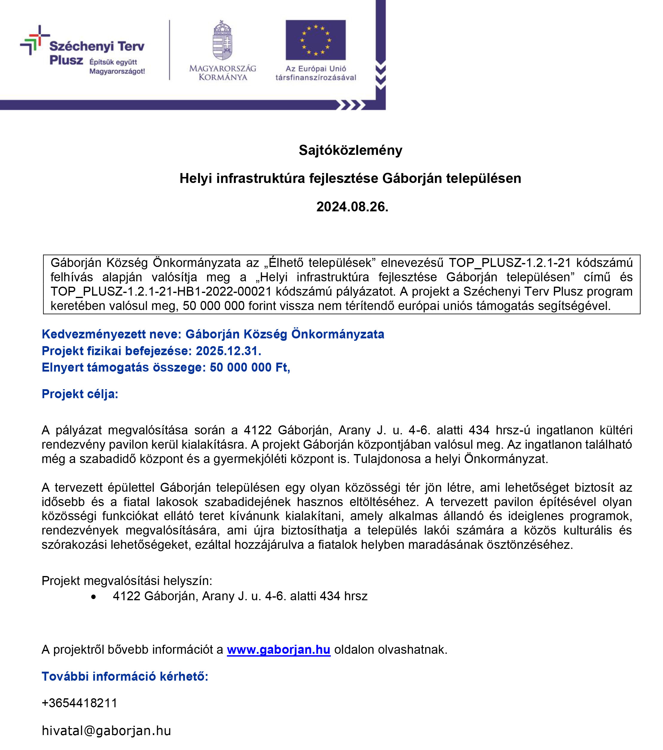 Levelezési cím:  4122 Gáborján, Fő utca 106.