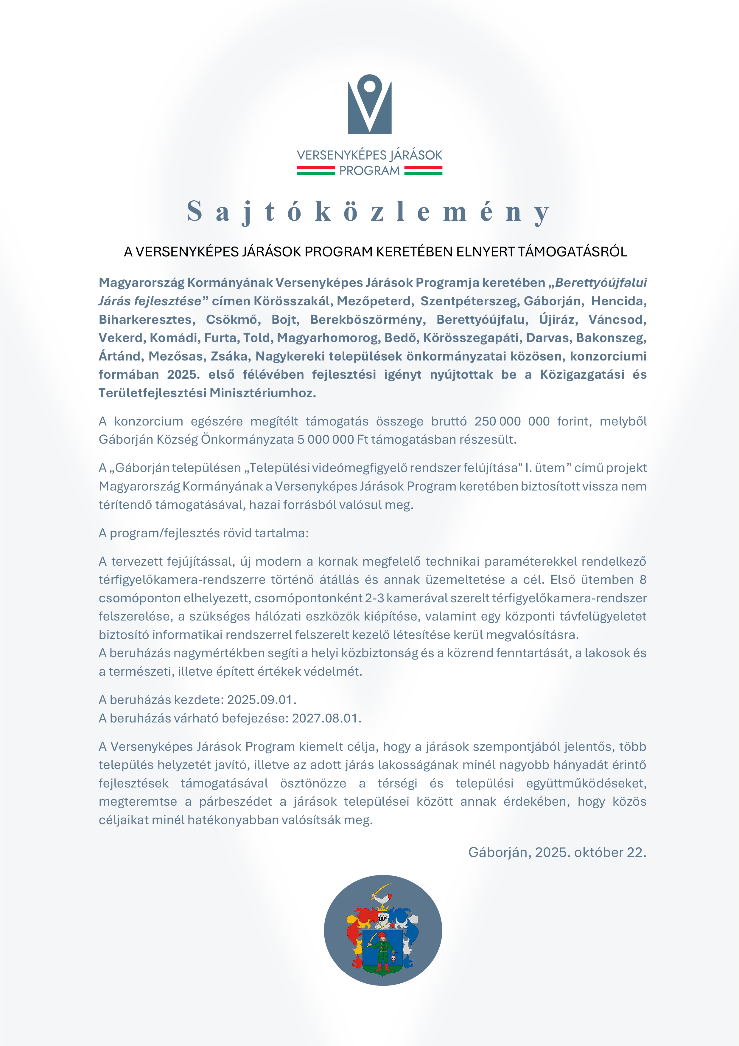 • A Versenyképes Járások Program keretében elnyert támogatásról